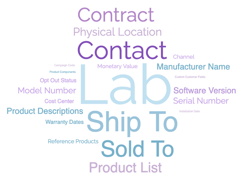 For this project, we are working with a company that provides services (warranty, preventative maintenance, etc) for Lab equipment. They have much stale and inconsistent data through their different CRM and ERP systems. They came to us with a list of “CDEs” Critical Data Elements (also referred to as KBEs, Key Business Elements) which are simple and derived data elements such as a sold-to party (encompassing the name, company, physical address, billing information, and more).